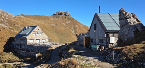 Während die Pfälzerhütte in den Wintermonaten geschlossen bleibt, ist die angrenzende Schutzhütte "Adlerhorst" geöffnet - ausgestattet mit Holzofen, Kochherd und 21 Schlafplätzen. Vor der Schutzhütte befindet sich seit Oktober 2025 ein Kompotoi. Bitte frühzeitig melden (info@alpenverein), wenn Einstreu und Toilettenpapier zur Neige gehen. Zudem muss die Tür des Kompotois zum Sturmschutz nach Benutzung immer verriegelt werden. (Benutzerinfo und Foto Kompotoi).