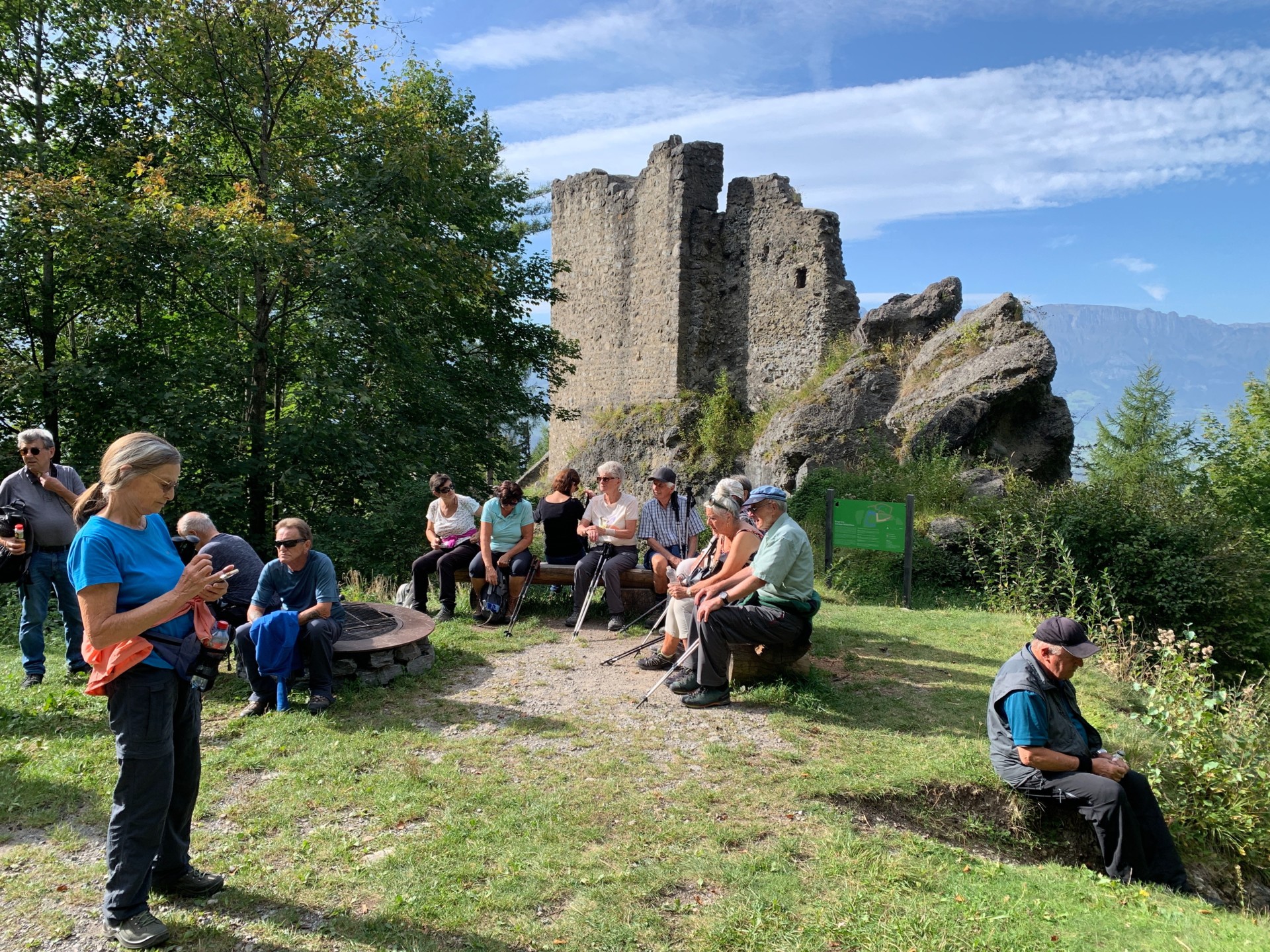 Von Masescha wandern wir ins Vorderprufatscheng und dann ins Hinterprufatscheng. Von dort führt die Wanderung durch den fürstlichen Wald zur Ruine Schalun (= Wildschloss) und dann ins Zentrum von Vaduz, wo wir im Restaurant Balu einkehren. Wanderstöcke sind sehr empfohlen, vor allem für die Strecke Vorderes Prufatscheng – Wildschloss bei nassem Wetter.
