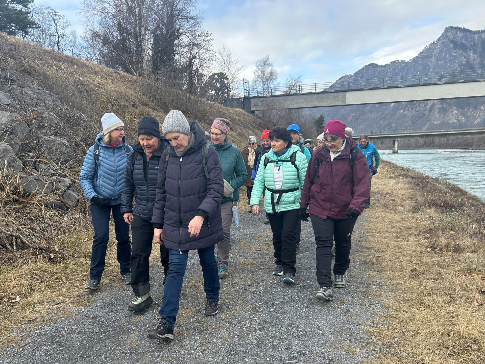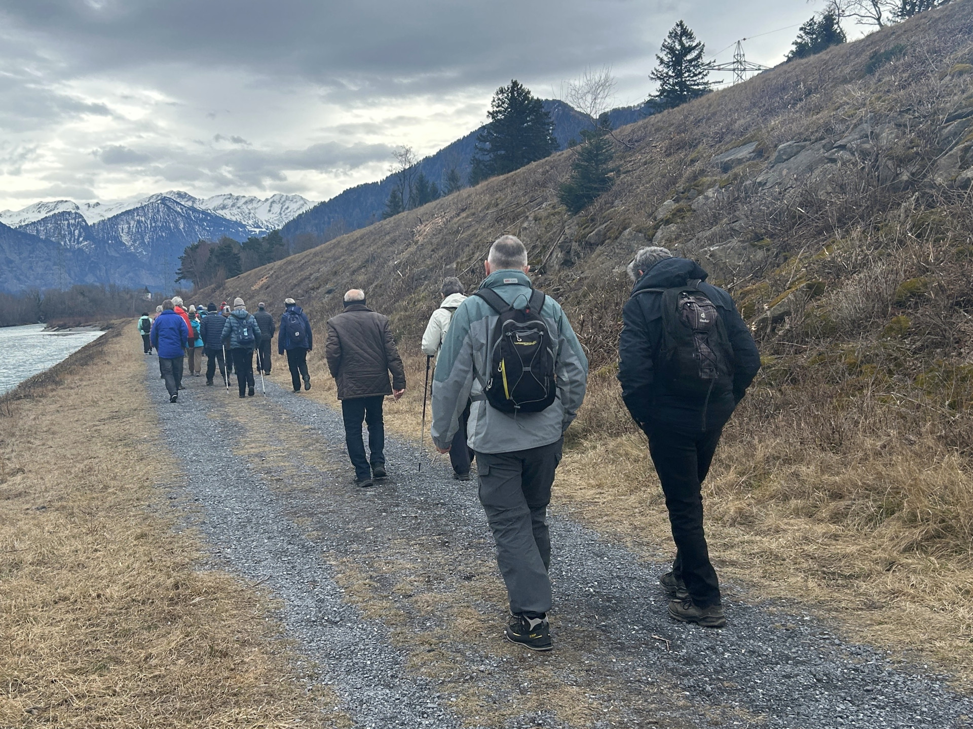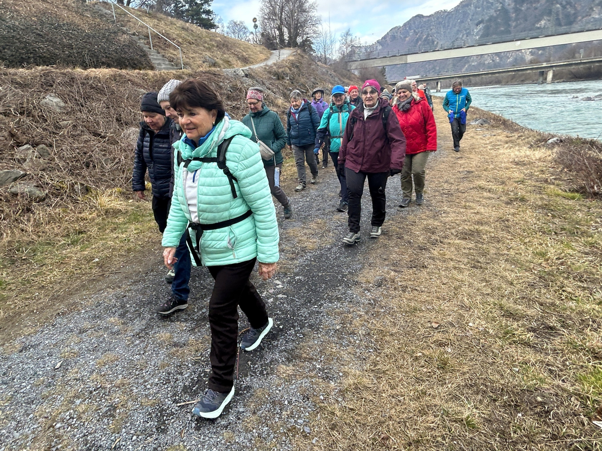 Vom Parkplatz bei der Fläscherbrücke in Bad Ragaz wandern wir am Ufer des Rheins entlang bis zur Brücke zur Autobahnzufahrt. Dort überqueren wir den Rhein, wandern durch das Städtchen Maienfeld und anschliessend durch die Weinberge bis kurz vor dem Dörfchen Fläsch. Dort geht es wieder hinunter zum Rhein und am Rheinufer entlang zum Ausgangspunkt. Anschliessend fahren wir mit den Autos zum Café Kuppelwieser zum Einkehrschwung.