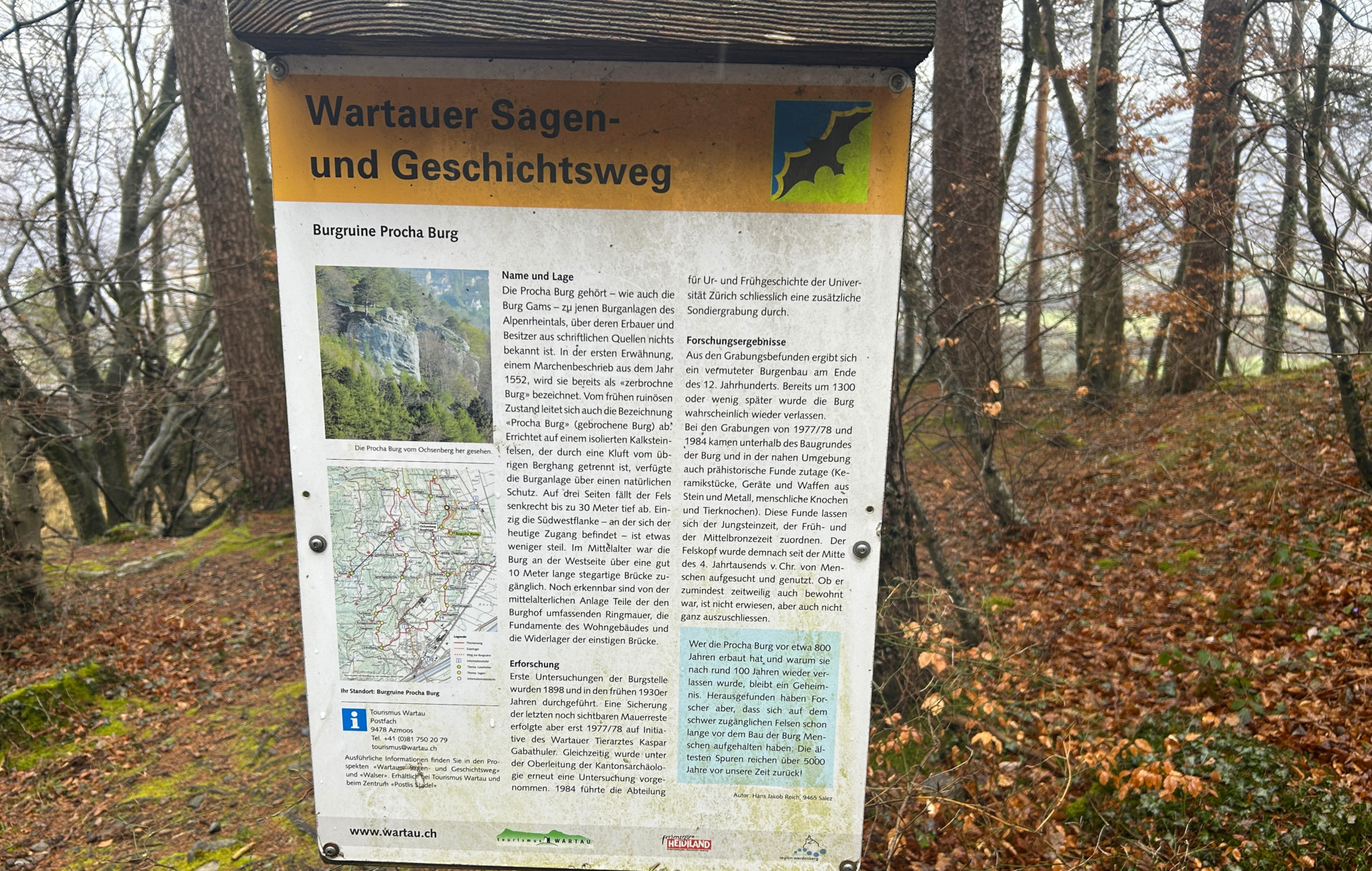 Start der Wanderung ist bei der Post in Sevelen. Ab da geht’s durch den Muntjolwald, dem Selvaweg zur Procha Burg weiter nach Gretschins, Fontnas, Boschgis bis Trübbach zur Einkehr ins Restaurant Selva.