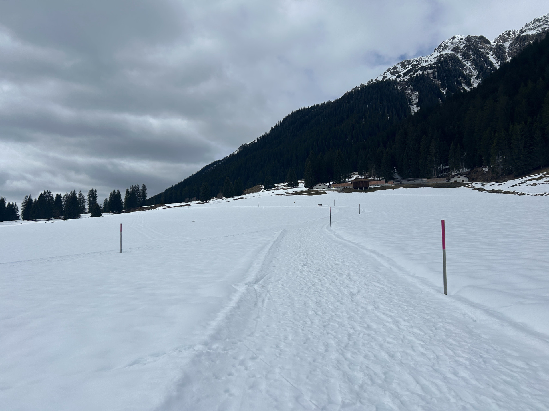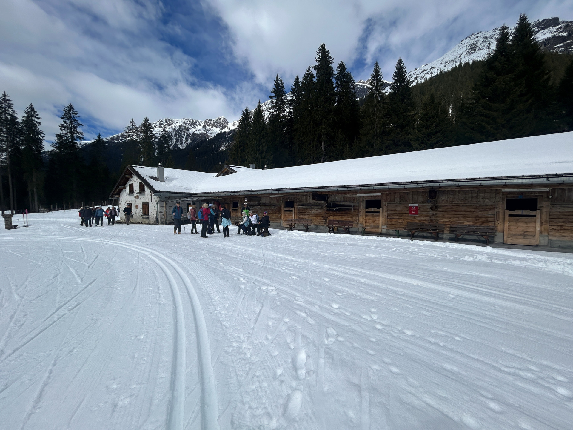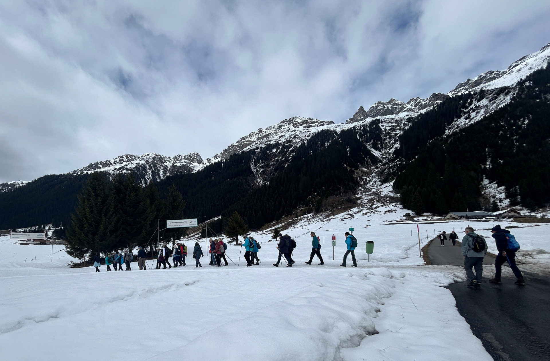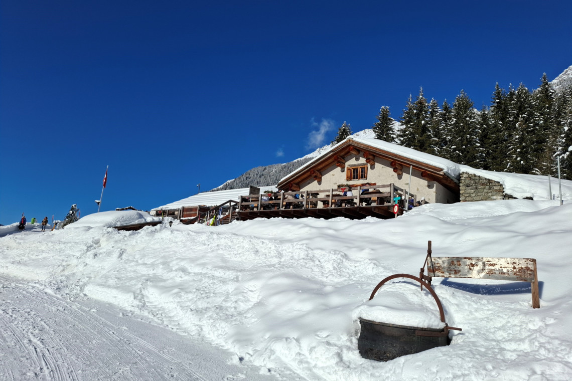 Ausgangspunkt der Winterwanderung ist der Parkplatz bei der Bushaltestelle Monbiel. Von dort aus geht es auf dem markierten Winterwanderweg zur Alp Garfiun, wo die Mittagsrast eingelegt wird. Nach dem Mittagessen geht es leicht hinunter und dem Winterwanderweg folgend zur Alp Nova, danach nahe dem Fluss Landquart zurück nach Monbiel.