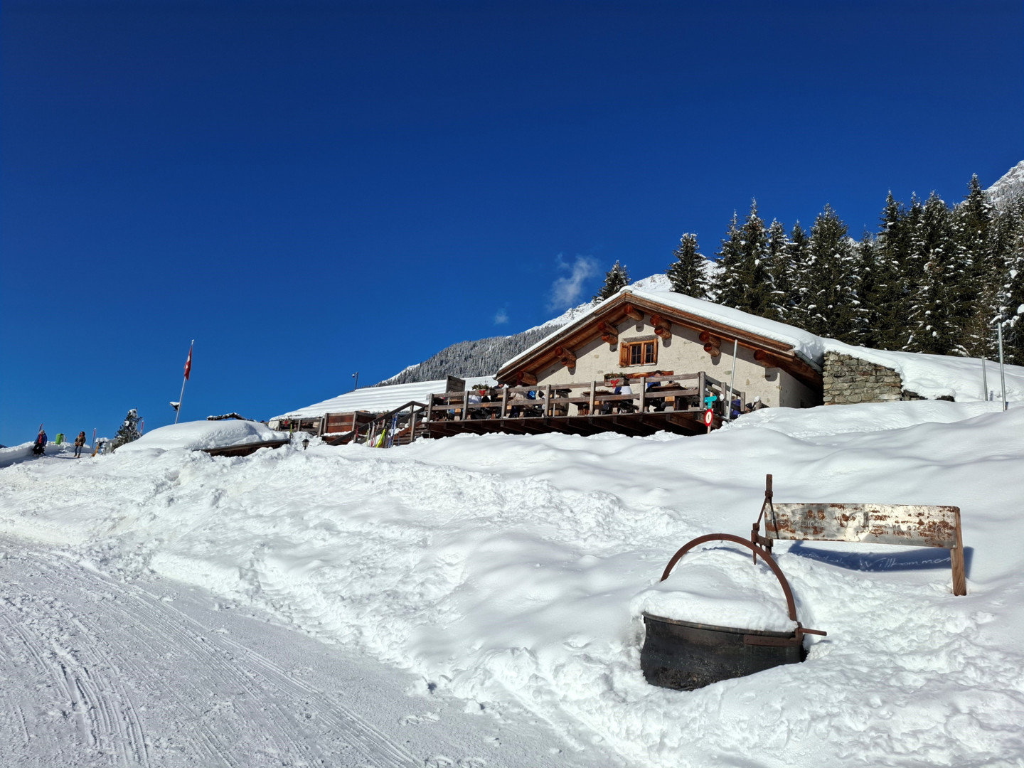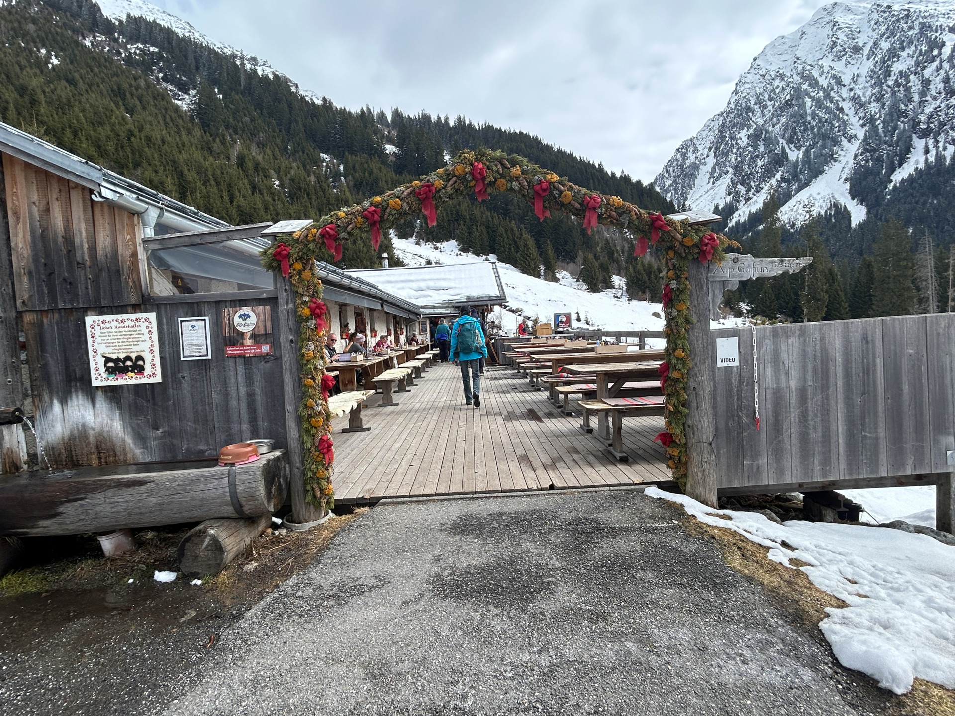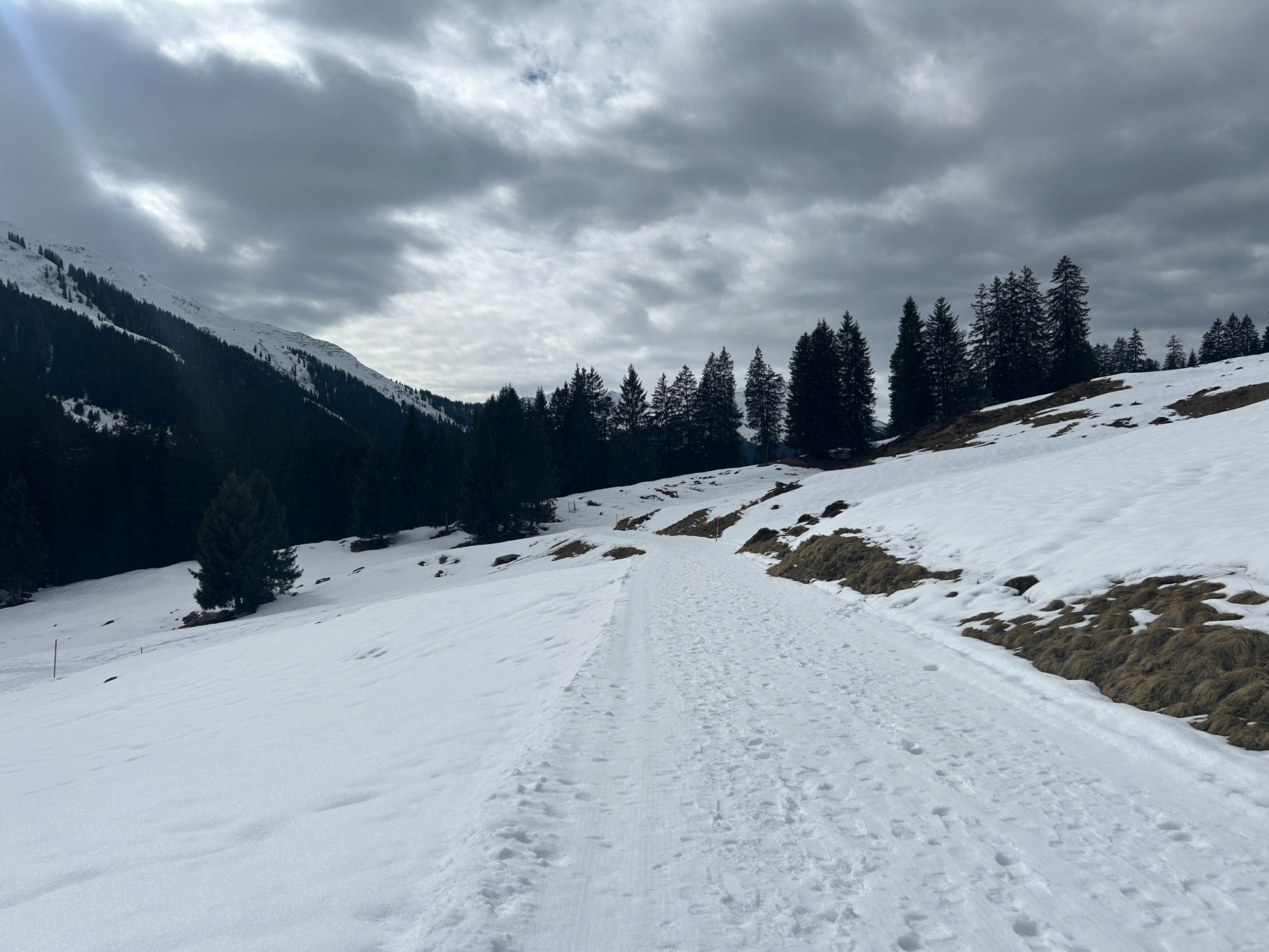 Ausgangspunkt der Winterwanderung ist der Parkplatz bei der Bushaltestelle Monbiel. Von dort aus geht es auf dem markierten Winterwanderweg zur Alp Garfiun, wo die Mittagsrast eingelegt wird. Nach dem Mittagessen geht es leicht hinunter und dem Winterwanderweg folgend zur Alp Nova, danach nahe dem Fluss Landquart zurück nach Monbiel.