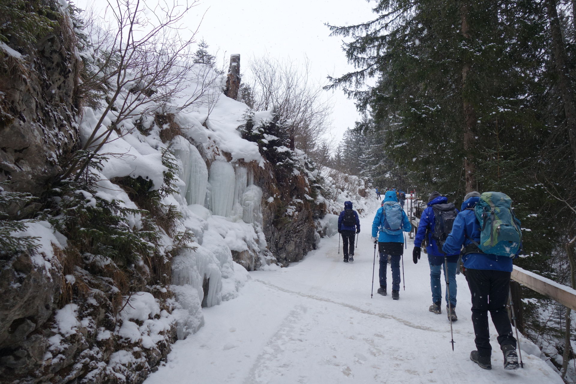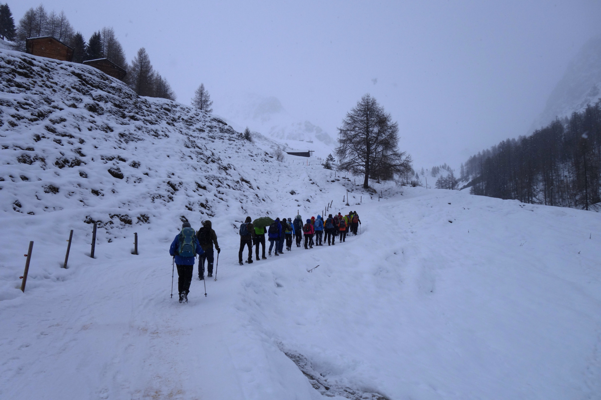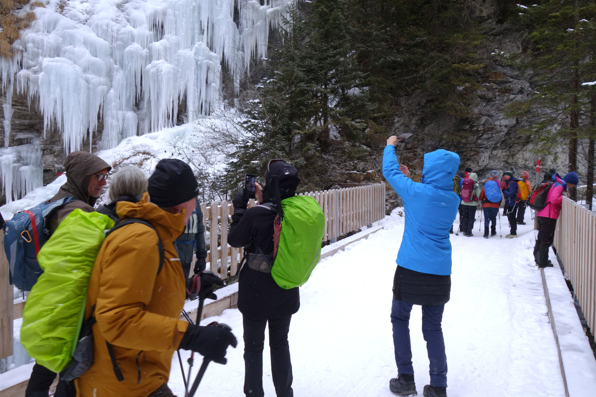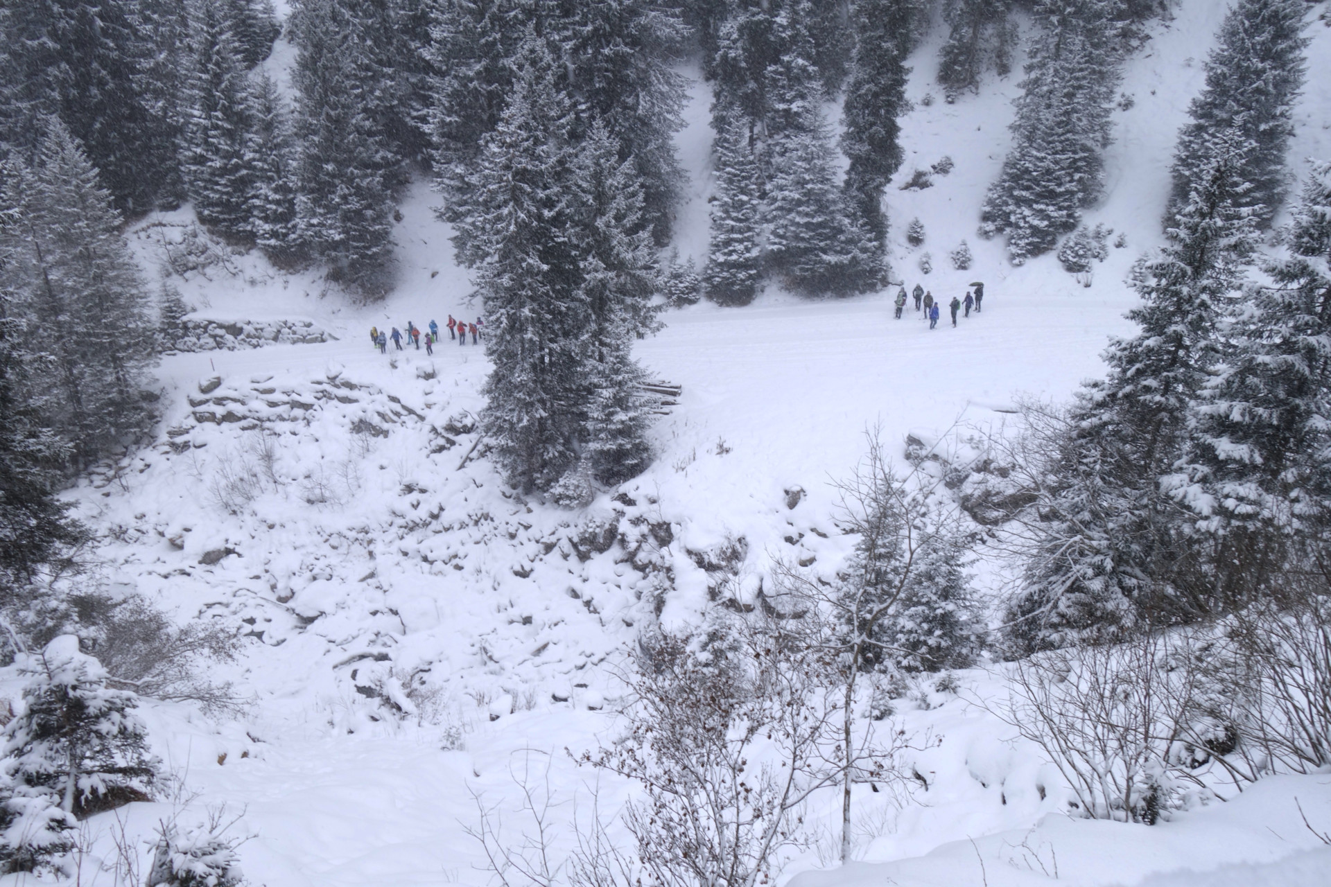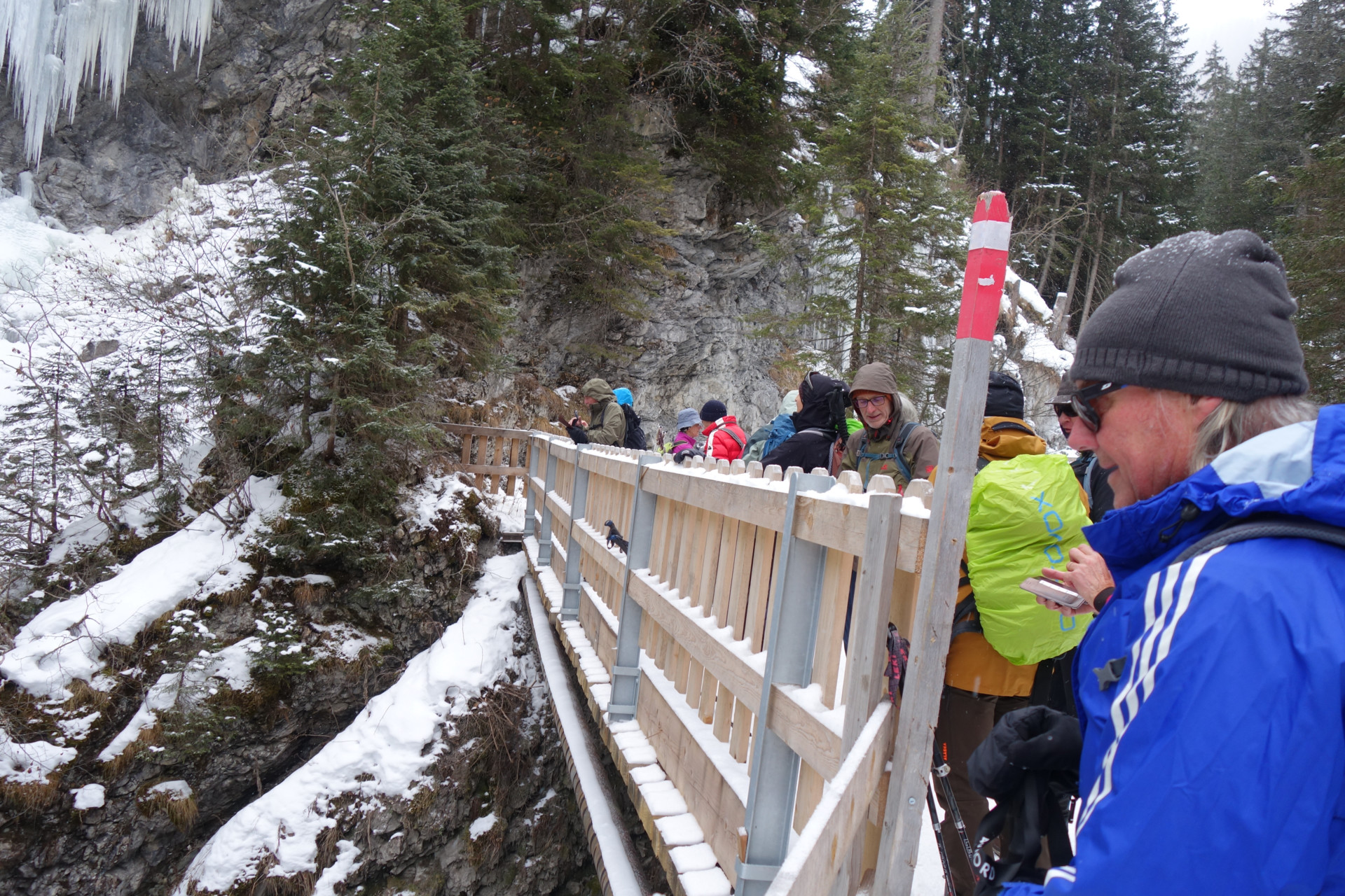 Start der Wanderung in Langwies ist beim Parkplatz an der Sapüner Brücke. Der Winterwanderweg führt durch das wilde und romantische Tal, über hohe Brücken und an grossen Eiszapfen vorbei. Weiter geht es zum Walserdorf Sapün Dörflji. Ein schönes altes Walserdof, wo man die spezielle Holzbaukunst der Walser bewundern kann. Nach dem Dorf führt der Weg weiter zum Weiler Chüpfen, von wo ein kurzer anstrengender Aufstieg zum Restaurant Heimeli erfolgt. Nach dem Essen geht es den gleichen Weg zurück zum Ausgangspunkt