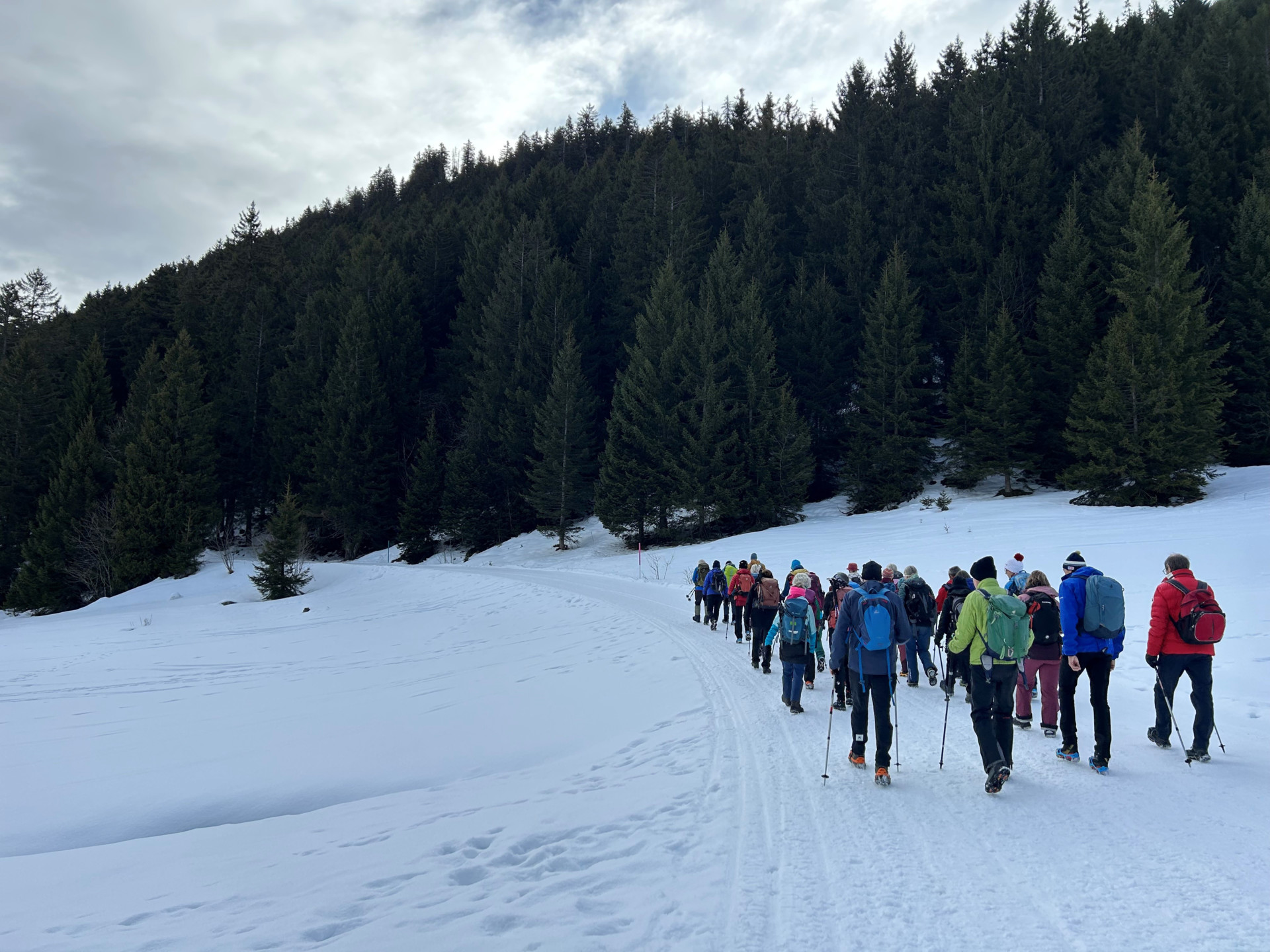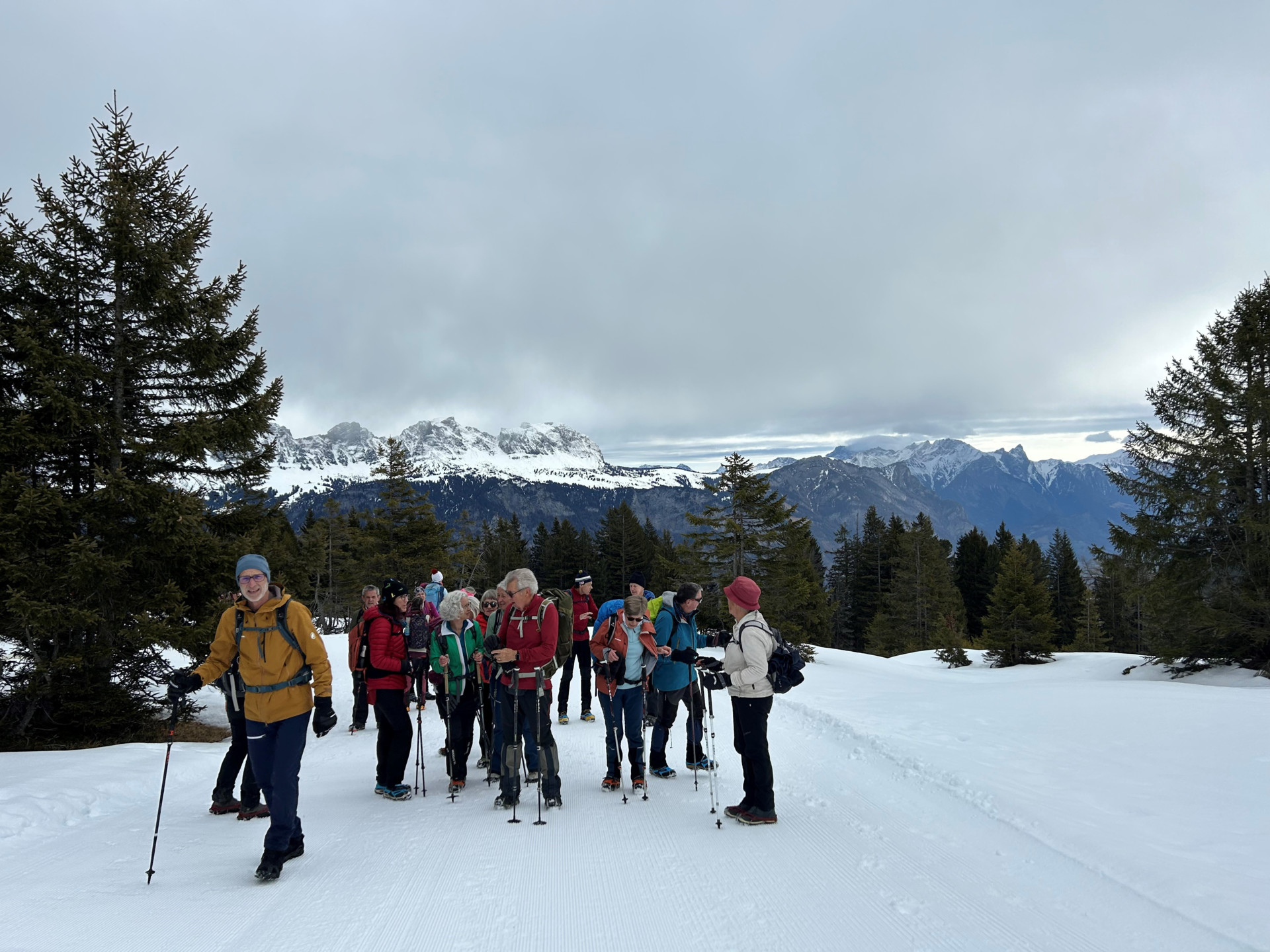 Mit dem LAV Bus und Privatautos fährt die Wandergruppe nach Flumserberg. Von Tannenboden geht es auf dem präparierten Winterwanderweg zur Alp Tannenboden, vorbei an der Prodalp und Rotenberg. Weiter geht es entlang des Panoramaweg bis Panüöl. Bei schönem Wetter kann die prachtvolle Aussicht zu den Churfisten sowie zur Spitzmeilenarena genossen werden. Im Bergrestaurant Panüöl kehrt die Gruppe zum Mittagessen ein. Der Rückweg erfolgt auf der gleichen Strecke.