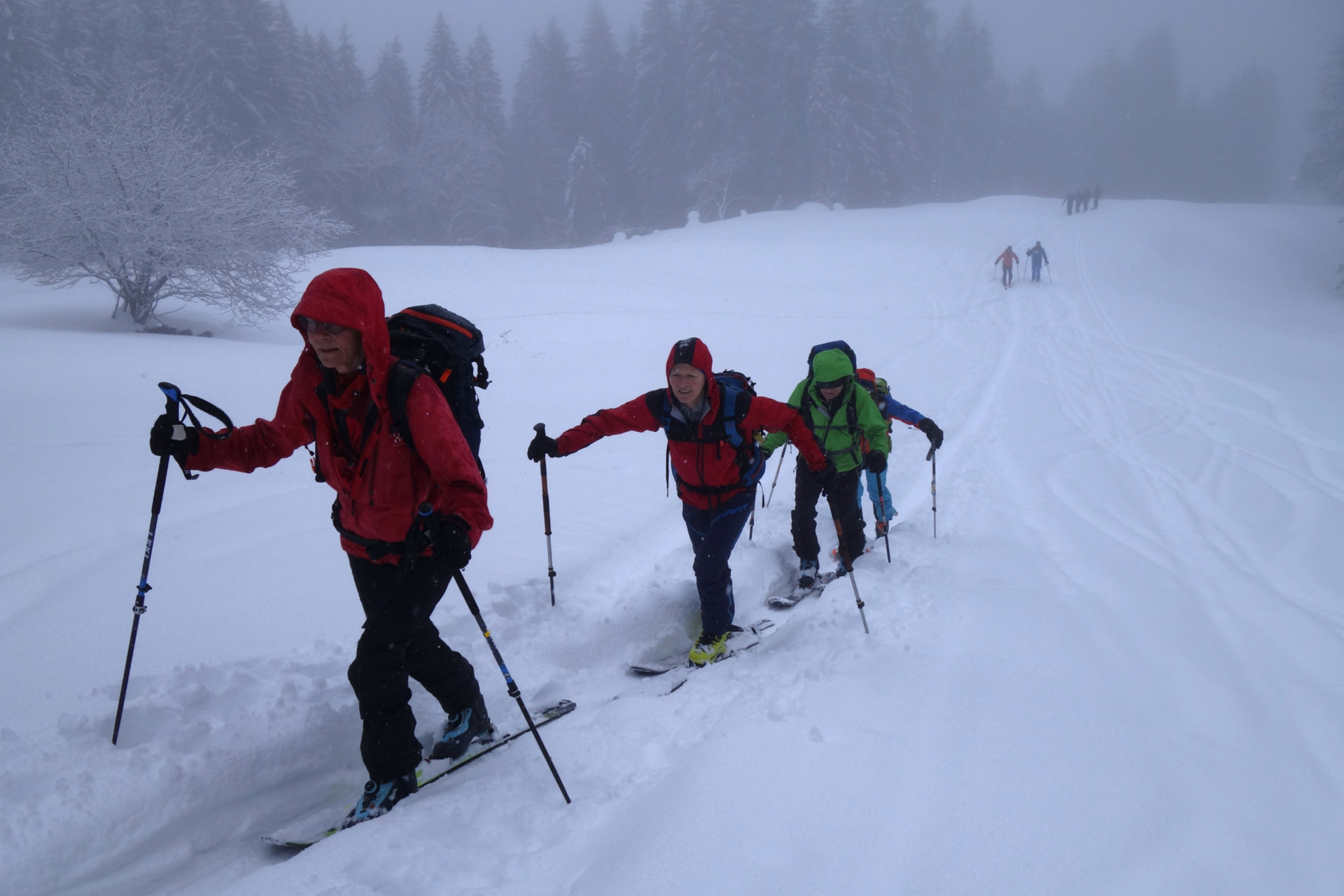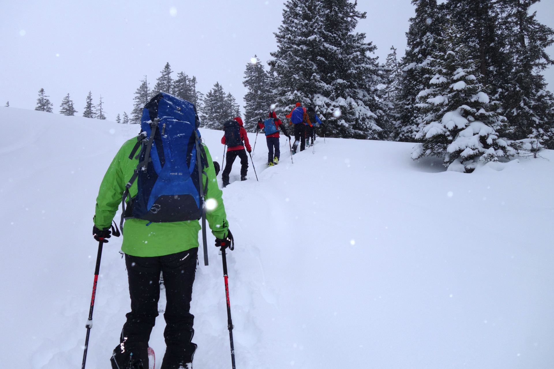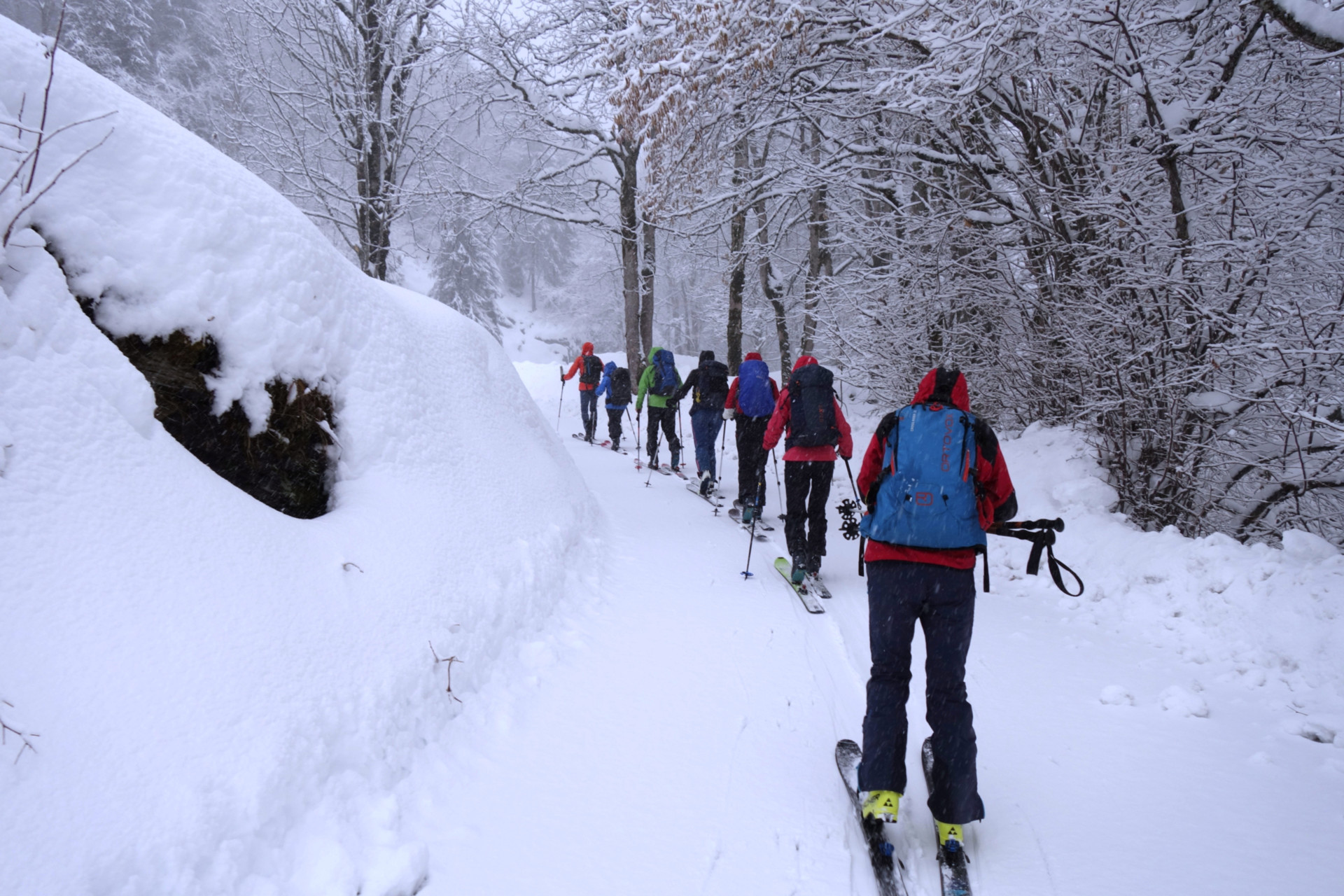 - Ausrüstung: LVS, Sonde, Schaufel, Harscheisen
